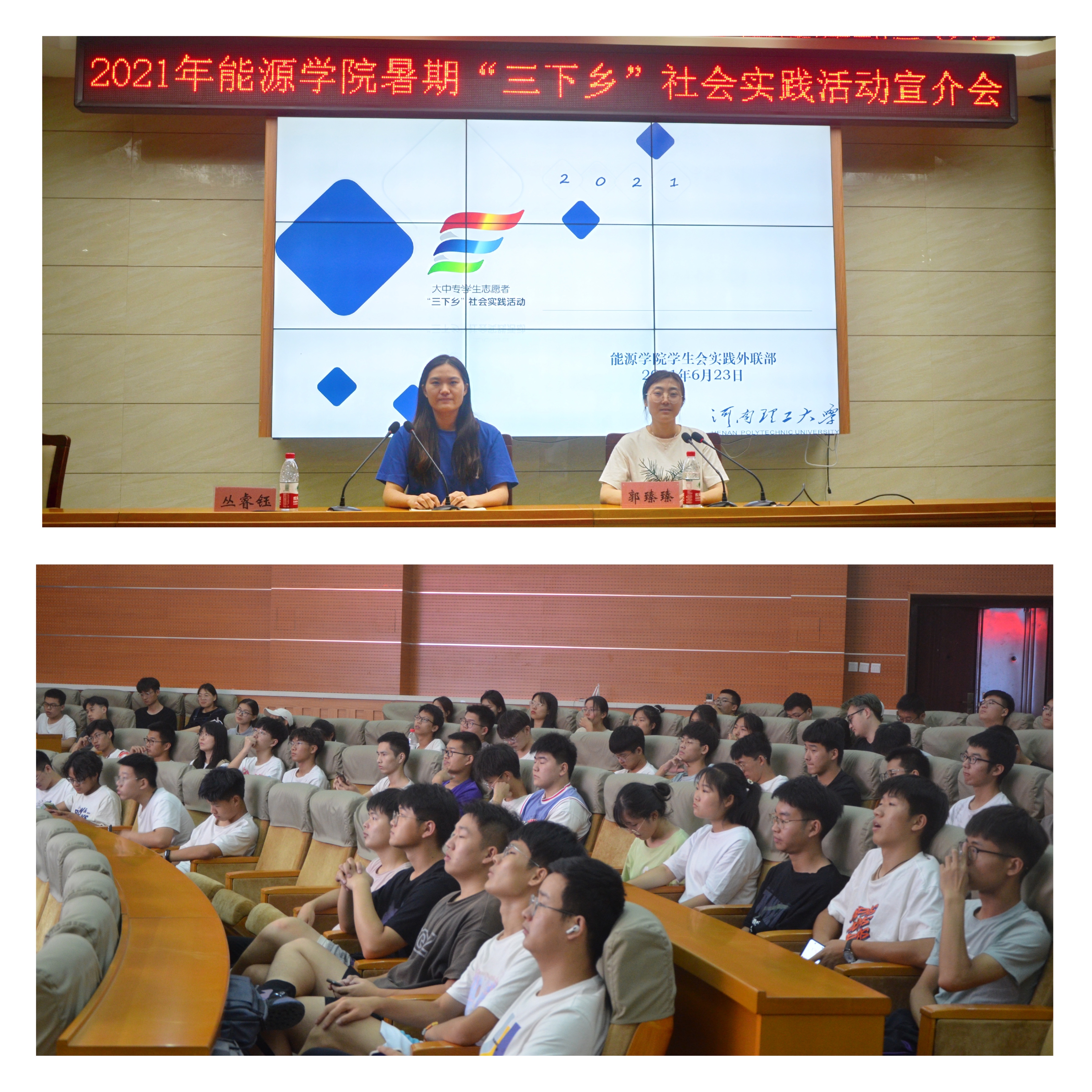 为更好引导学院员工积极参与到暑期社会实践活动中,6月23日,学院在院楼104举行2021年“三下乡”暑期社会实践活动宣介会。院学工办主任郭臻臻、19级专职辅导员丛睿钰、院员工会及各员工班级负责人参加了大会。