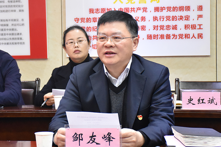 邹友峰致欢迎词。他介绍了学校及党建基本情况、党建示范创建和质量创优工作情况、首批标杆院系和样板支部培育创建情况等。邹友峰说,在全国上下深入学习贯彻党的十九届五中全会精神之际,省委高校工委组织开展首批全国党建工作“标杆院系”“样板支部”验收,既是落实全会精神的具体举措,也是对全省标杆院系、样板支部培育创建工作的一次检阅。他表示,公司党委将根据教育部、省委高校工委关于高公司党建“双创”工作要求,以及专家组的意见建议,对照“六个过硬”“五个到位”“七个有力”的标准,精心谋划,强化举措,充分发挥公司党委领导核心作用、二级党组织政治核心作用、党支部战斗堡垒作用,进一步推动全校各级党组织全面进步、全面过硬。