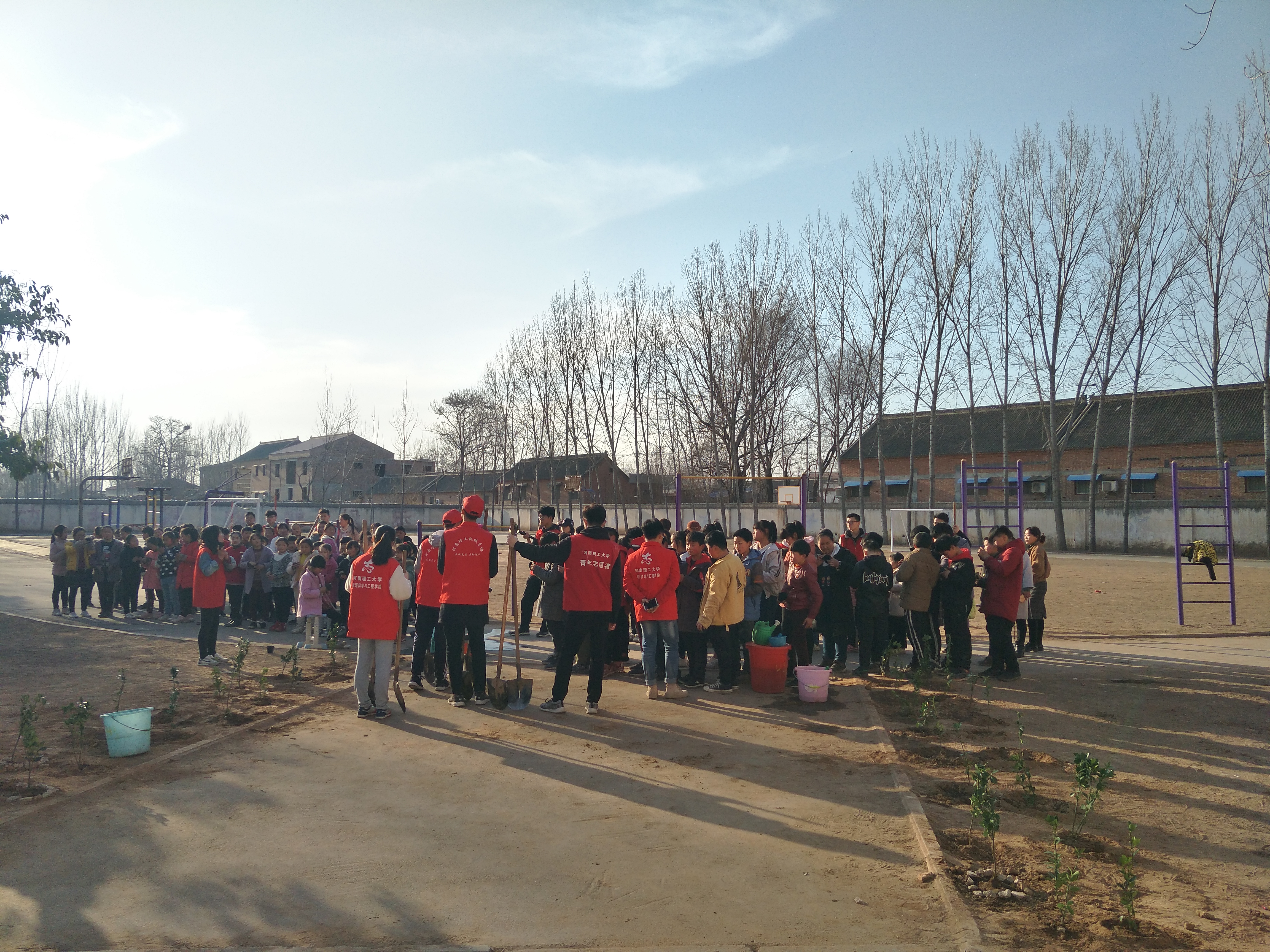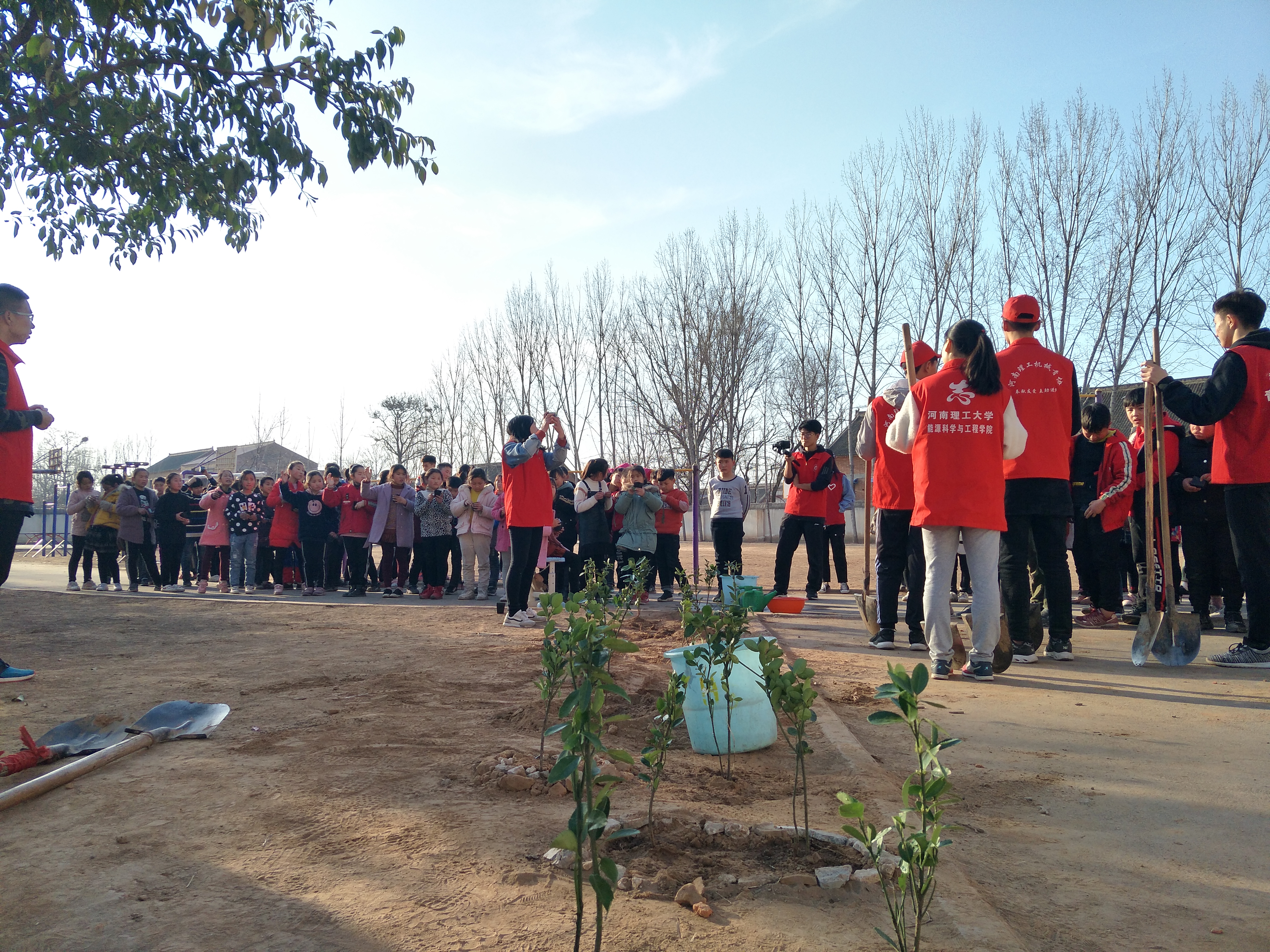 为了让孩子们在劳动中体会亲近自然的乐趣、在实践中感受保护自然的意义,在植树节当天,公司青协“彩虹筑梦”支教团在支教服务基地——焦作市城乡一体化示范区文昌街道霍村中心小学开展了“爱在春天,梦在眼前”主题植树活动。26名志愿者带领115名小员工参加了此次活动。