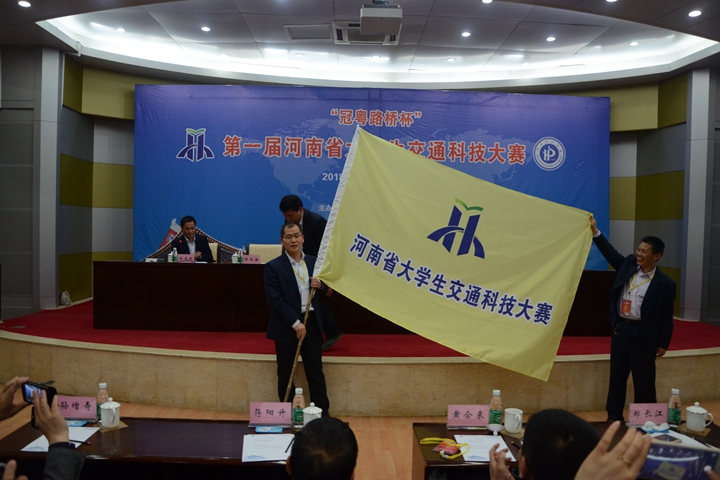比赛阶段结束后,14日下午,大赛闭幕式在学校力行楼圆形会议室举行,闭幕式由大赛秘书长朱成明主持。教育部高等学校交通工程教学指导分委员会副主任、同济大学杨晓光教授对本届大赛进行了总结并宣读了大赛一、二、三等奖的获奖名单。本次大赛分别共有8件作品获得一等奖、20件作品获得二等奖、28件作品获得三等奖、14件作品获得优秀奖。最后,大会举行了大赛会旗交接仪式,下届河南省老员工交通科技大赛由河南城建学院承办。
