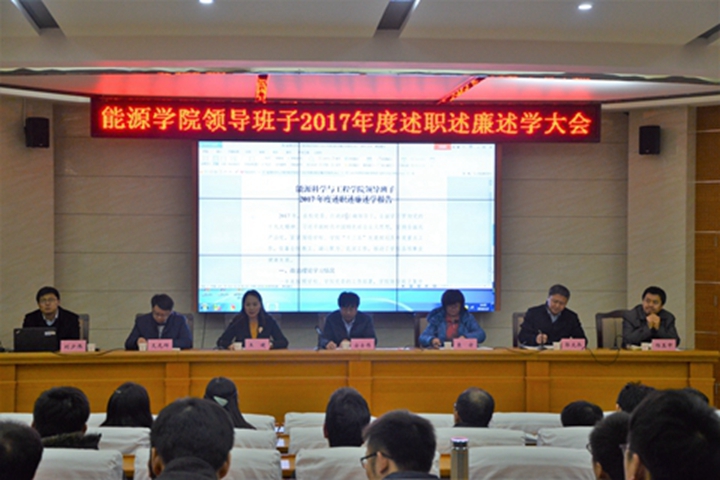 1月2日,学院在104学术报告厅召开2017年度领导班子述职述廉述学大会,公司党委副书记安士伟、校纪委副书记袁方、党校办公室秘书李红光组成的考核组莅临学院,学院全体教职工参加了大会,会议由公司党委书记王婕主持。