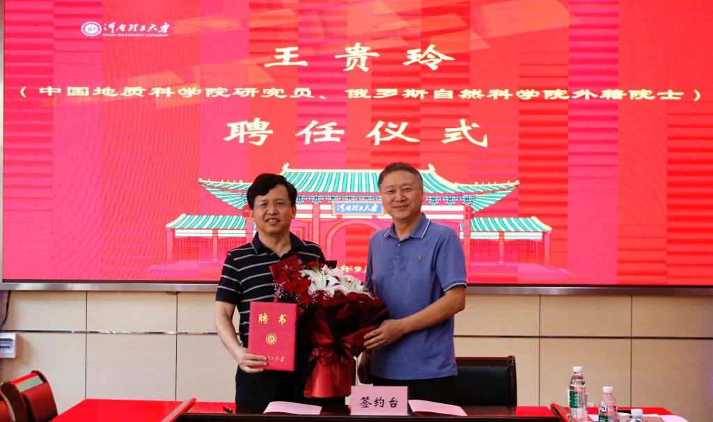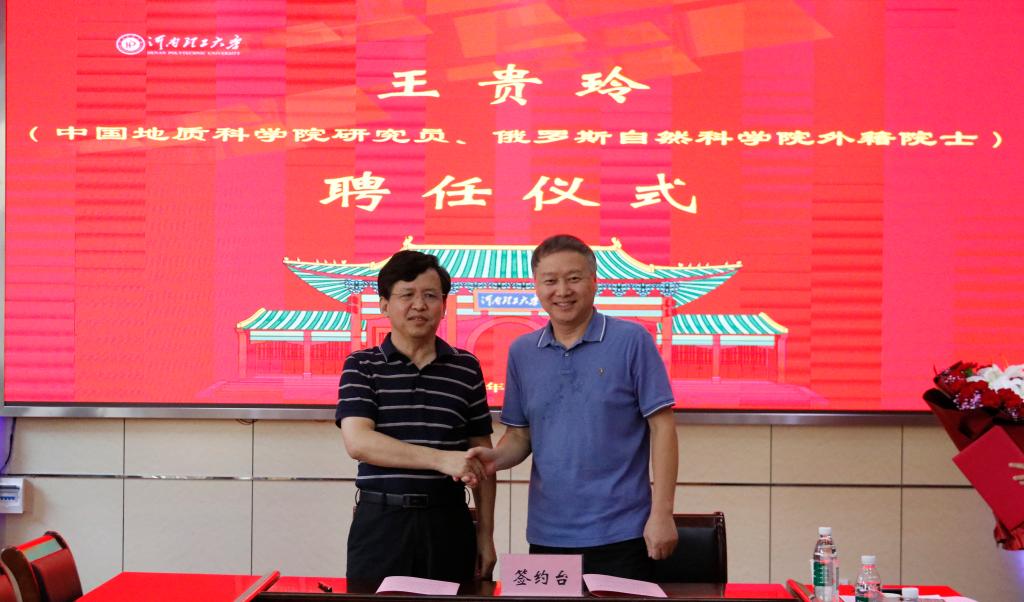 在与会人员的共同见证下,郭文兵经理与王贵玲院士在聘任协议书上签字。