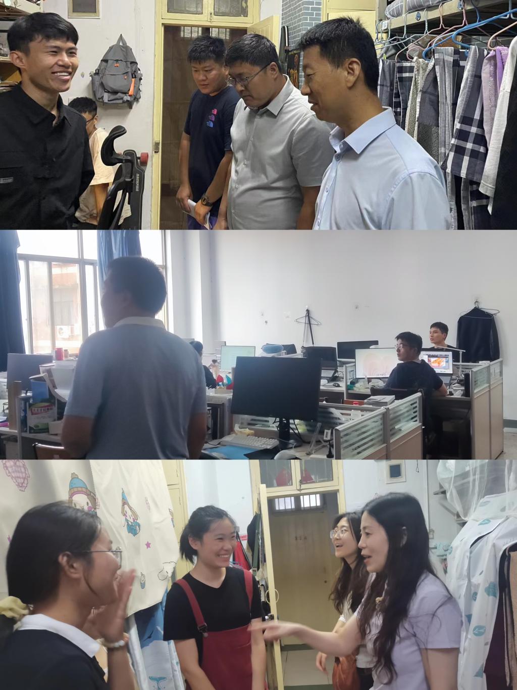 走访过程中,学院领导与员工进行亲切交谈,详细了解员工的返校过程及到校安置情况,询问新学期的课程安排是否合理,希望同学们尽快适应学校的学习生活。嘱咐同学们要互相关心,互相帮助,努力营造一个安全、卫生、文明、和谐的宿舍环境。最后希望大家在新学期制定合理计划,树立远大理想,珍惜学习时光,学有所成,不辜负家长的期望。各年级员工们纷纷表示,会尽快调整状态,在新的良好的校园氛围中专心投入学习,努力实现自身理想。